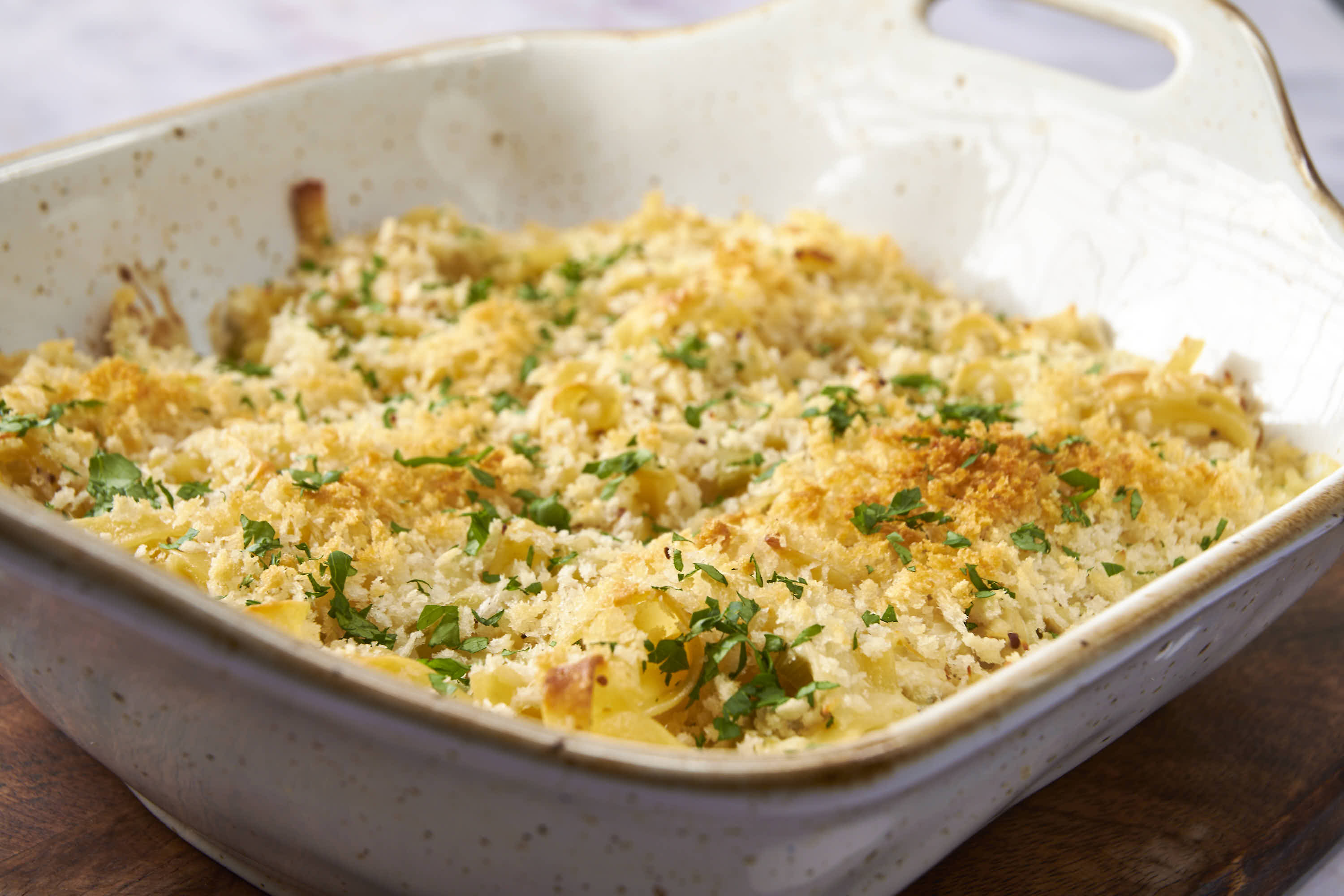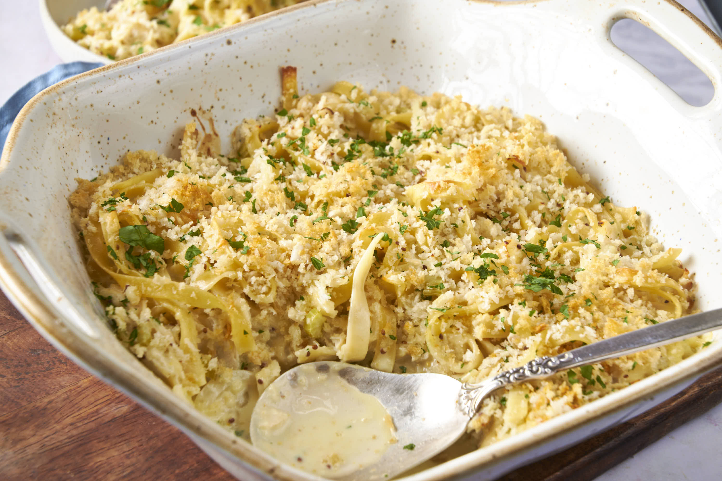 This dish isn't even a blessing in disguise! It's just a bountiful blessing of big flavors! Big Blessings Casserole features tender turkey, buttery egg noodles, and a creamy sauce in a casserole that's just perfect for shaking things up this Thanksgiving season! The crunchy breadcrumb topping is just another heavenly part that makes Big Blessings Casserole a gift for your guests and your taste buds! Enjoy this wonderfully divine bounty!