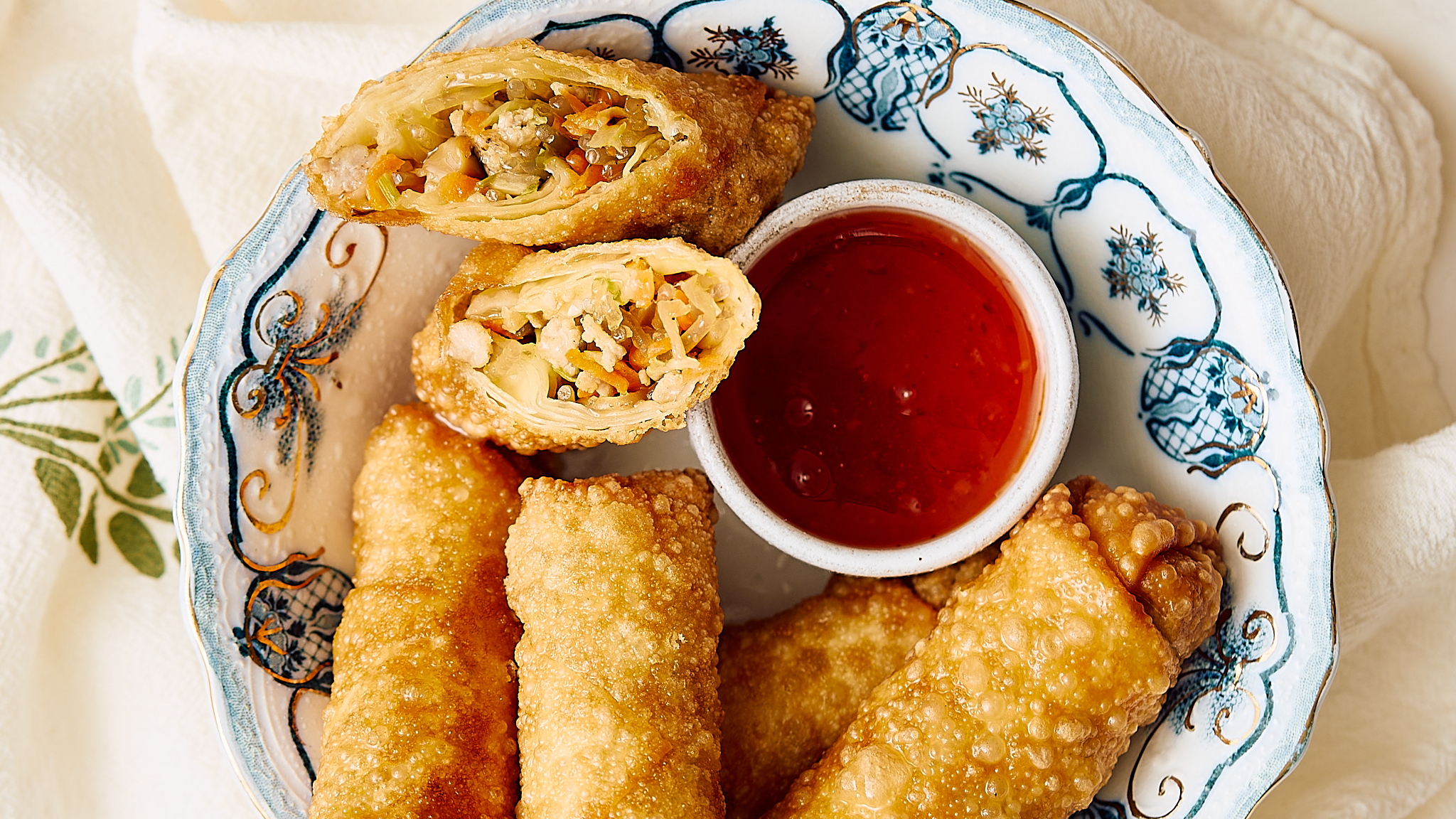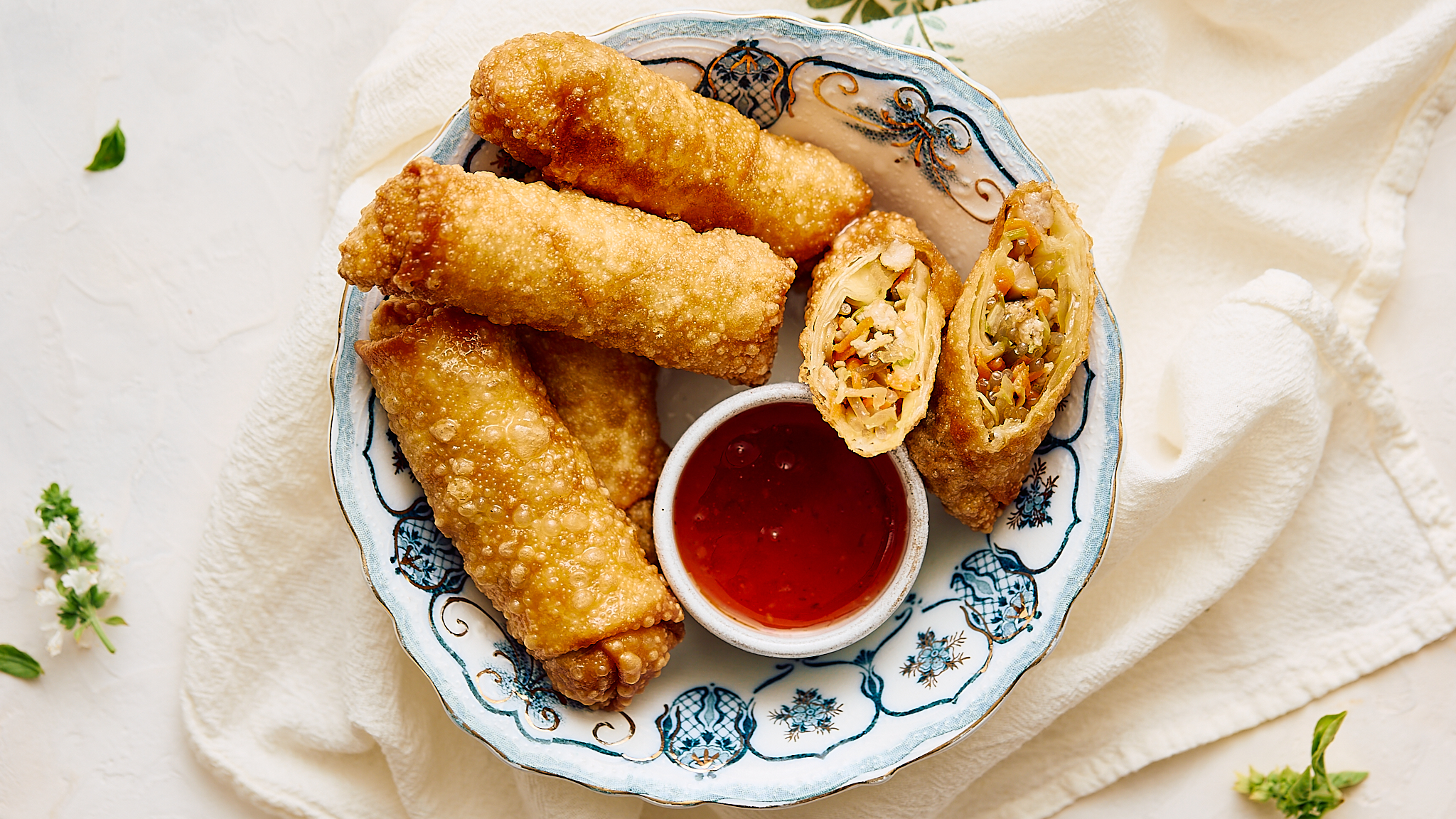 The perfect Asian-cuisine appetizer is just the best! The exterior is golden and crispy, the interior is succulent and packed with flavor — pork, tender glass noodles, fragrant spices, and sweet cabbage. Whether you eat them straight or dip them in a sweet and spicy chili sauce, Crispy Spring Rolls are just thing you need to make you smile before dinner is served. Unless this is dinner, which is also totally valid!