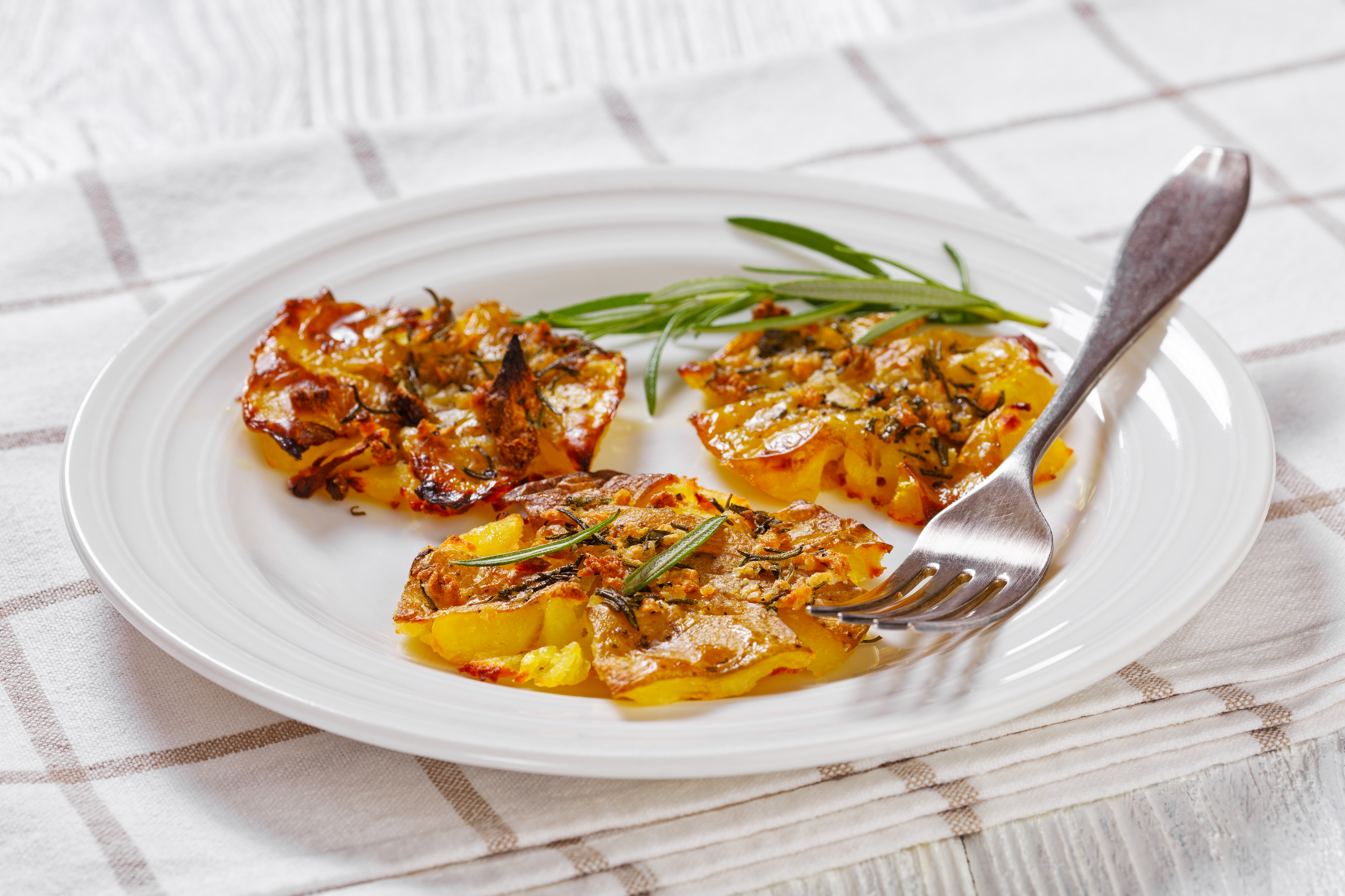 Oh, but this is the good stuff! No one will miss the fries when these Garlic Smashed Potatoes are on the table. Crispy, fluffy-on-the-inside, coated in fragrant garlic flavors... you don't even need ketchup because they are just that good. Serve Garlic Smashed Potatoes with steak, chicken, or just gobble them up as a snack. The possibilities are endless!