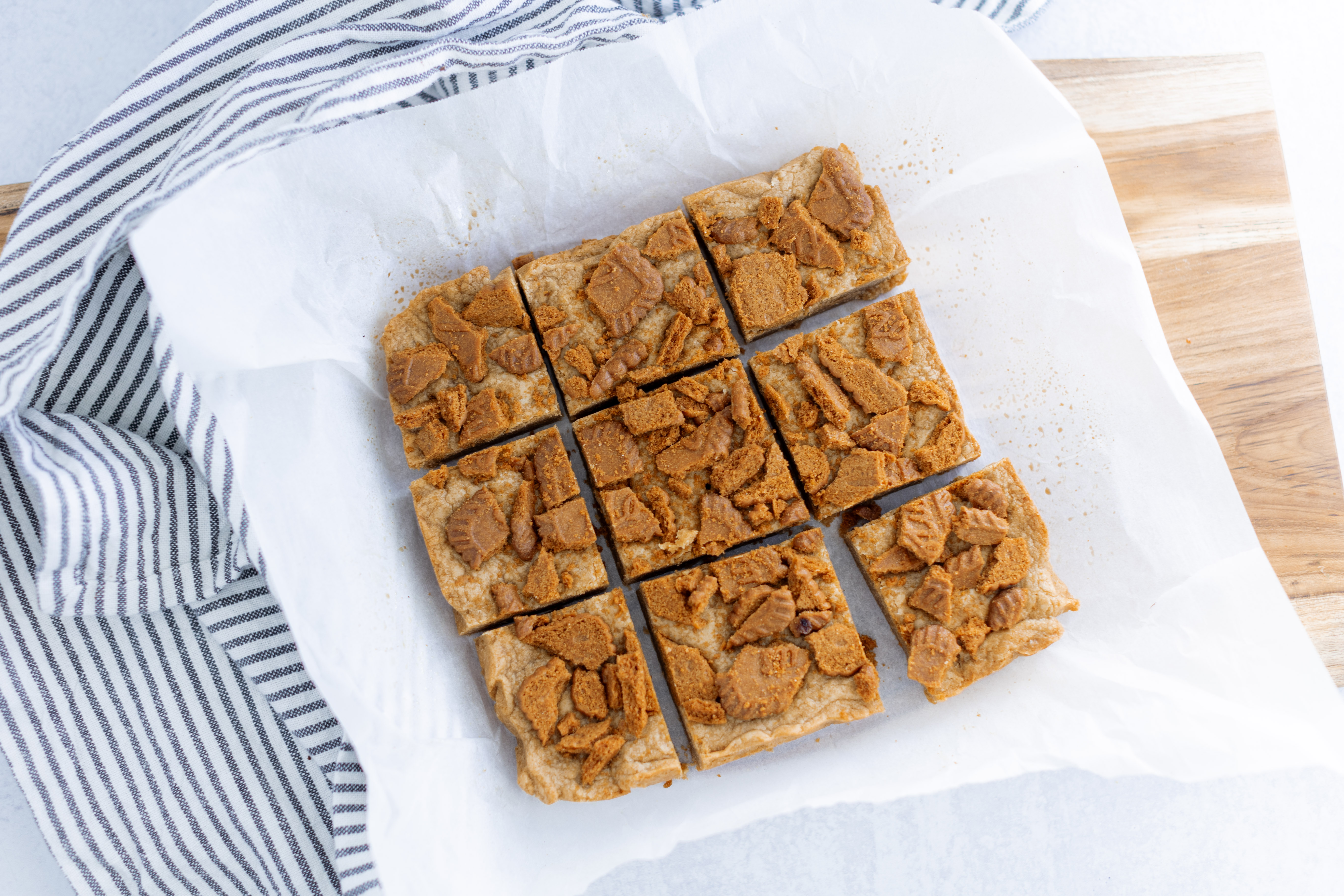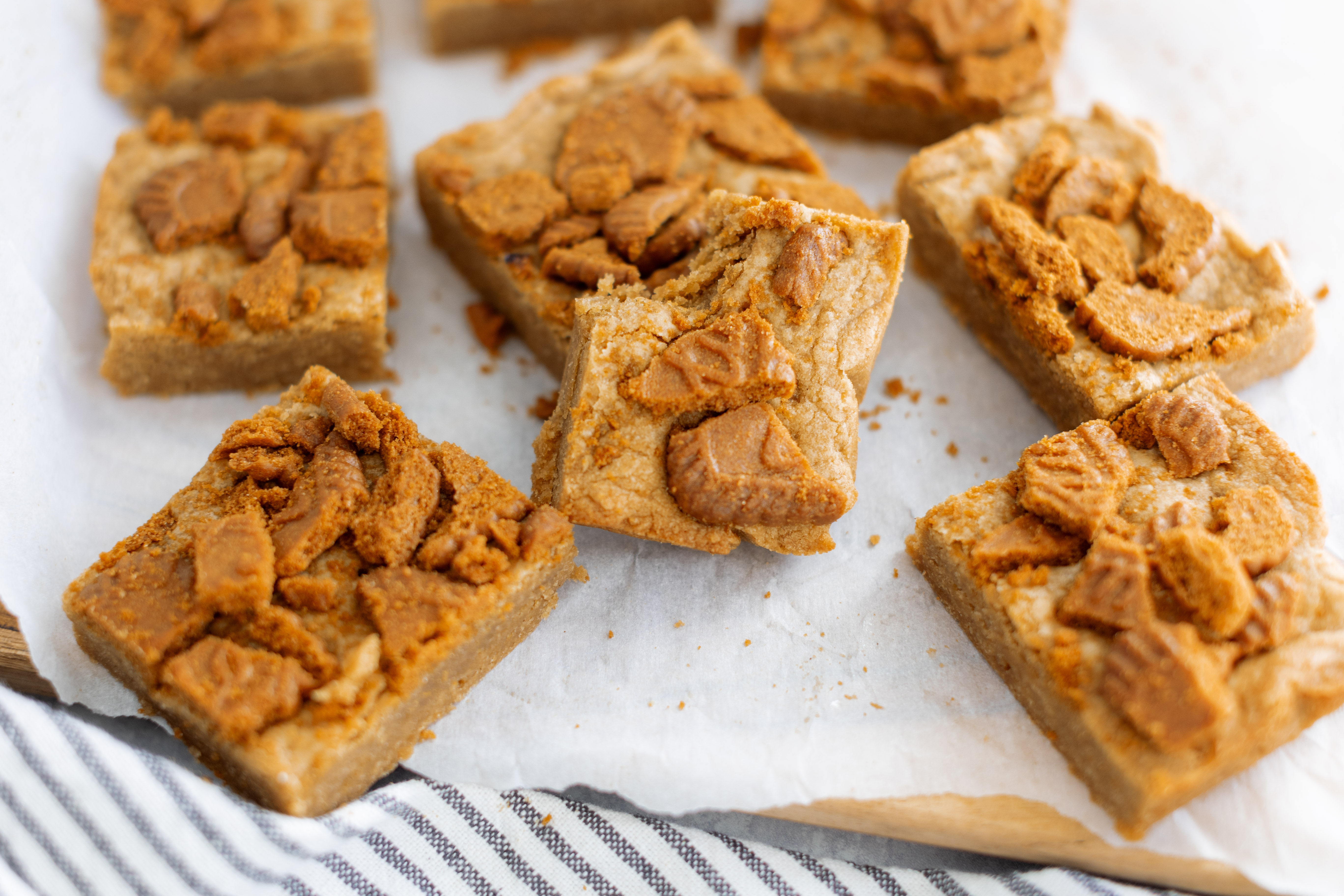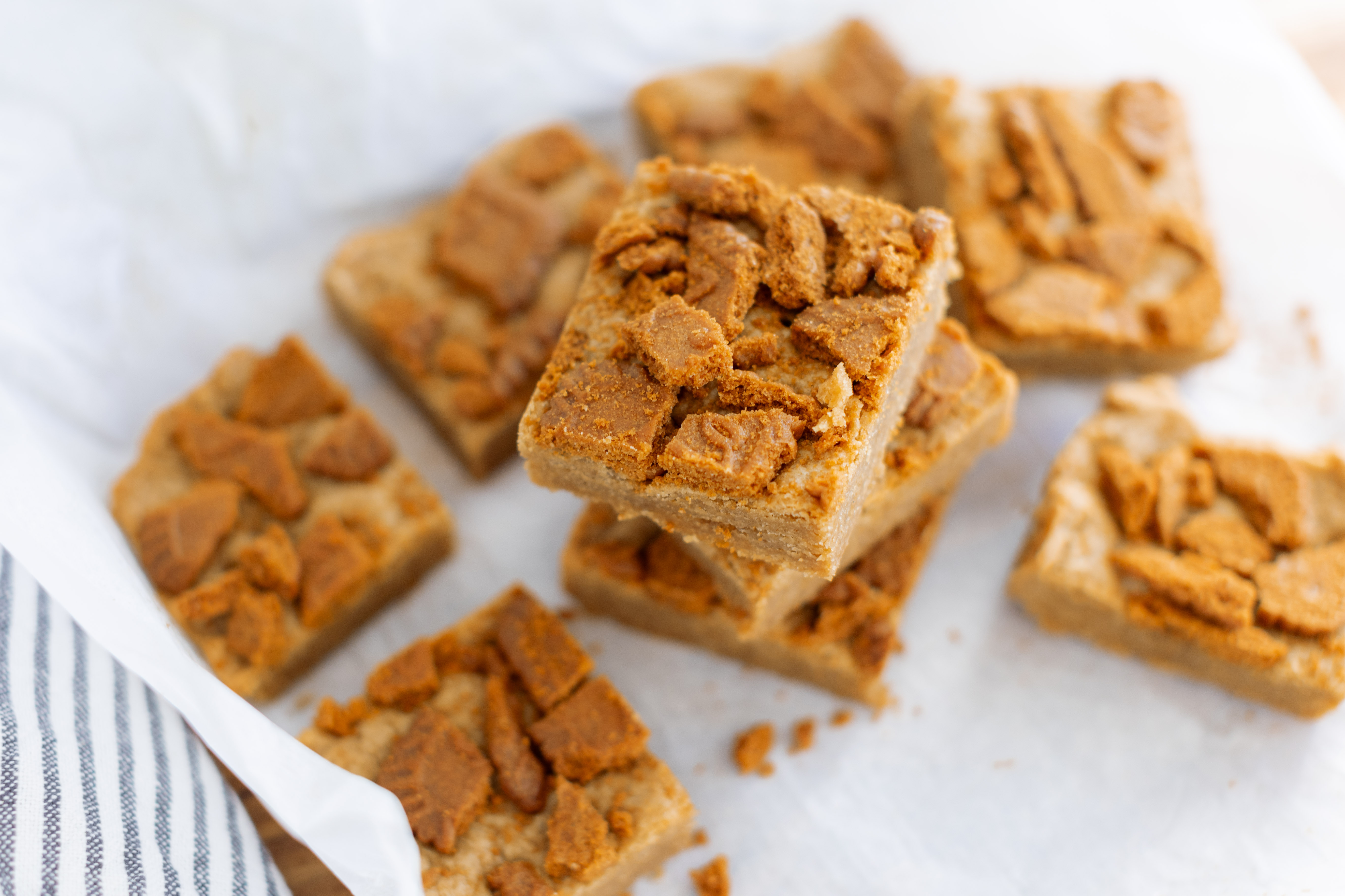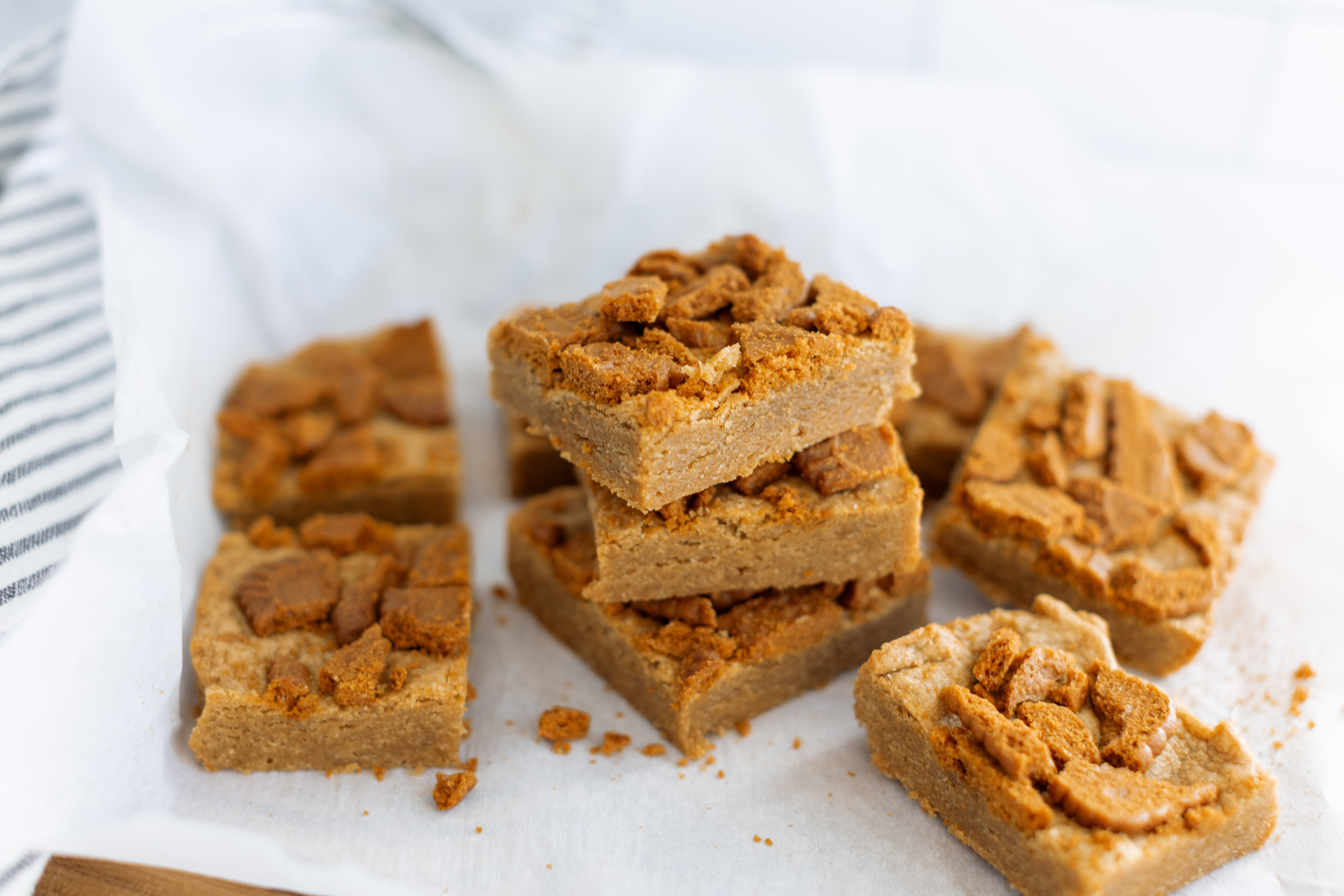 Everyone fell in love with cookie butter the second it became a thing, and now the question becomes "how can we incorporate this into even more treats?" The answer starts with these Gooey Cookie Butter Bars. These blondie-like desserts are so chewy and tender, with the warm spiced sweetness of the cookie butter baked right in. It even comes topped with speculoos cookies on top! For all the cookie butter lovers out there, there are few things better than Gooey Cookie Butter Bars... except perhaps for seconds (or thirds)!