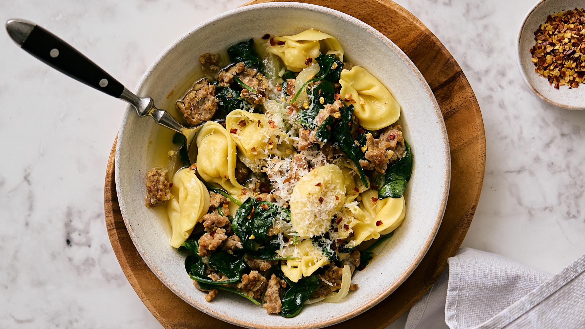 - 3/4 cup refrigerated cheese tortellini