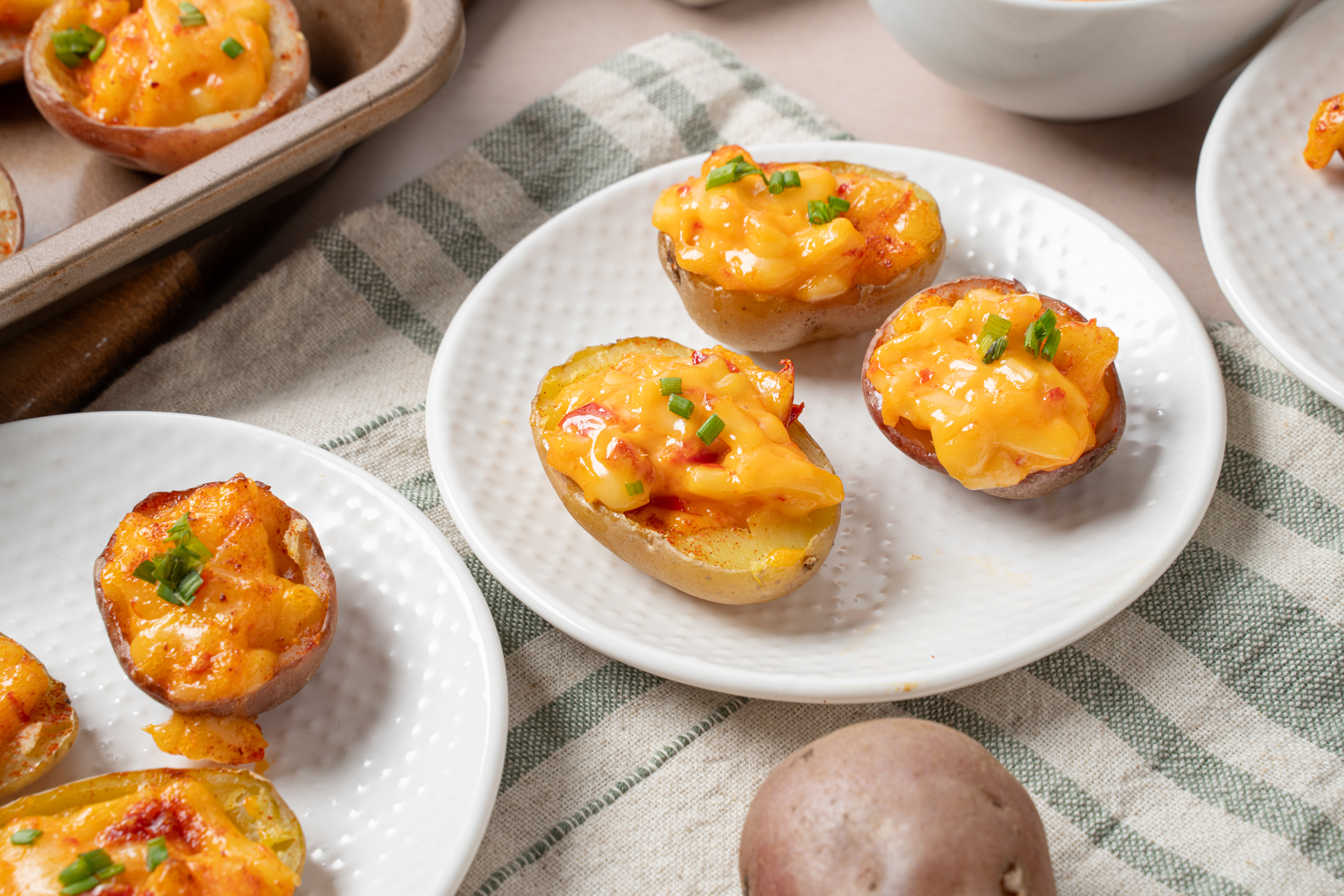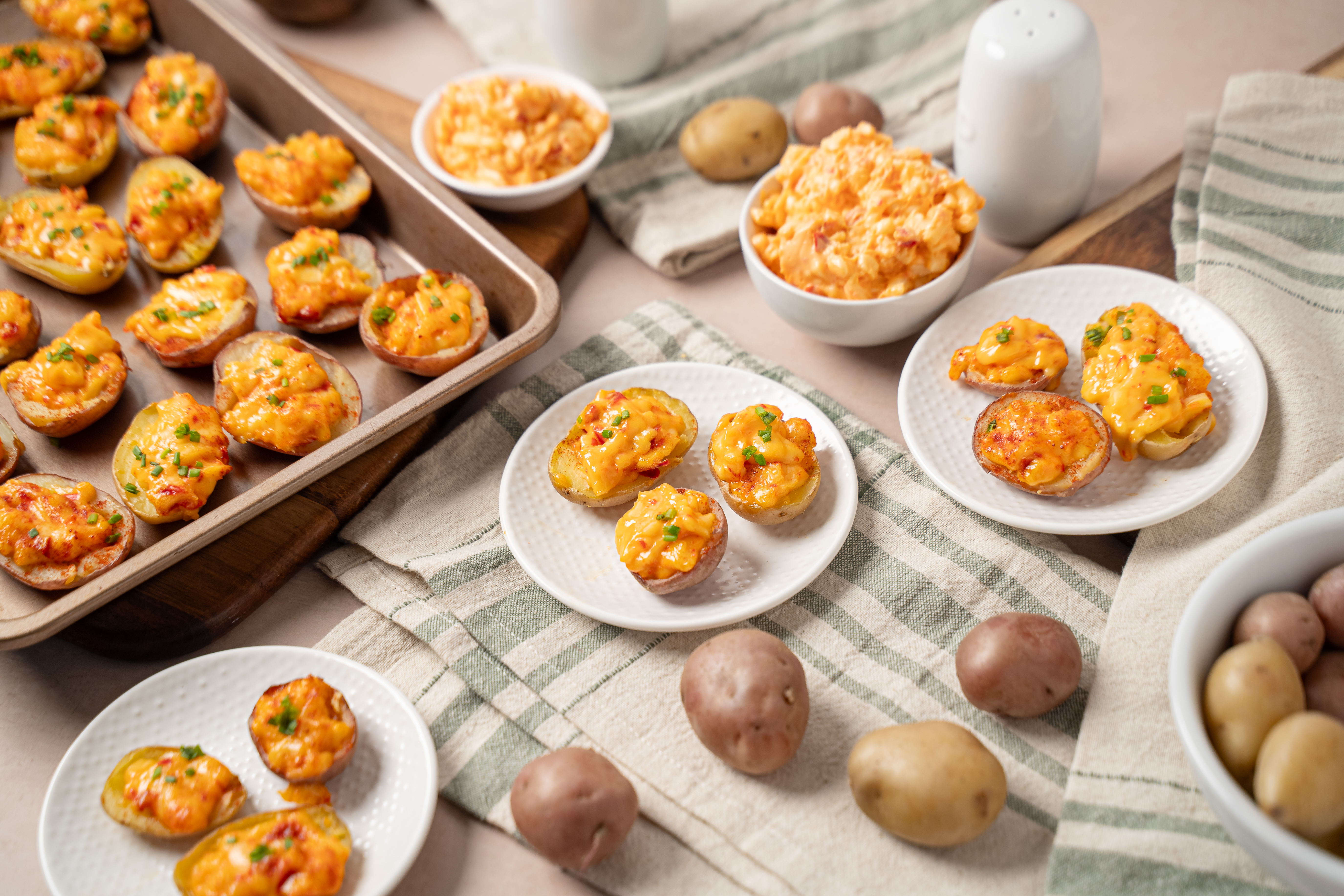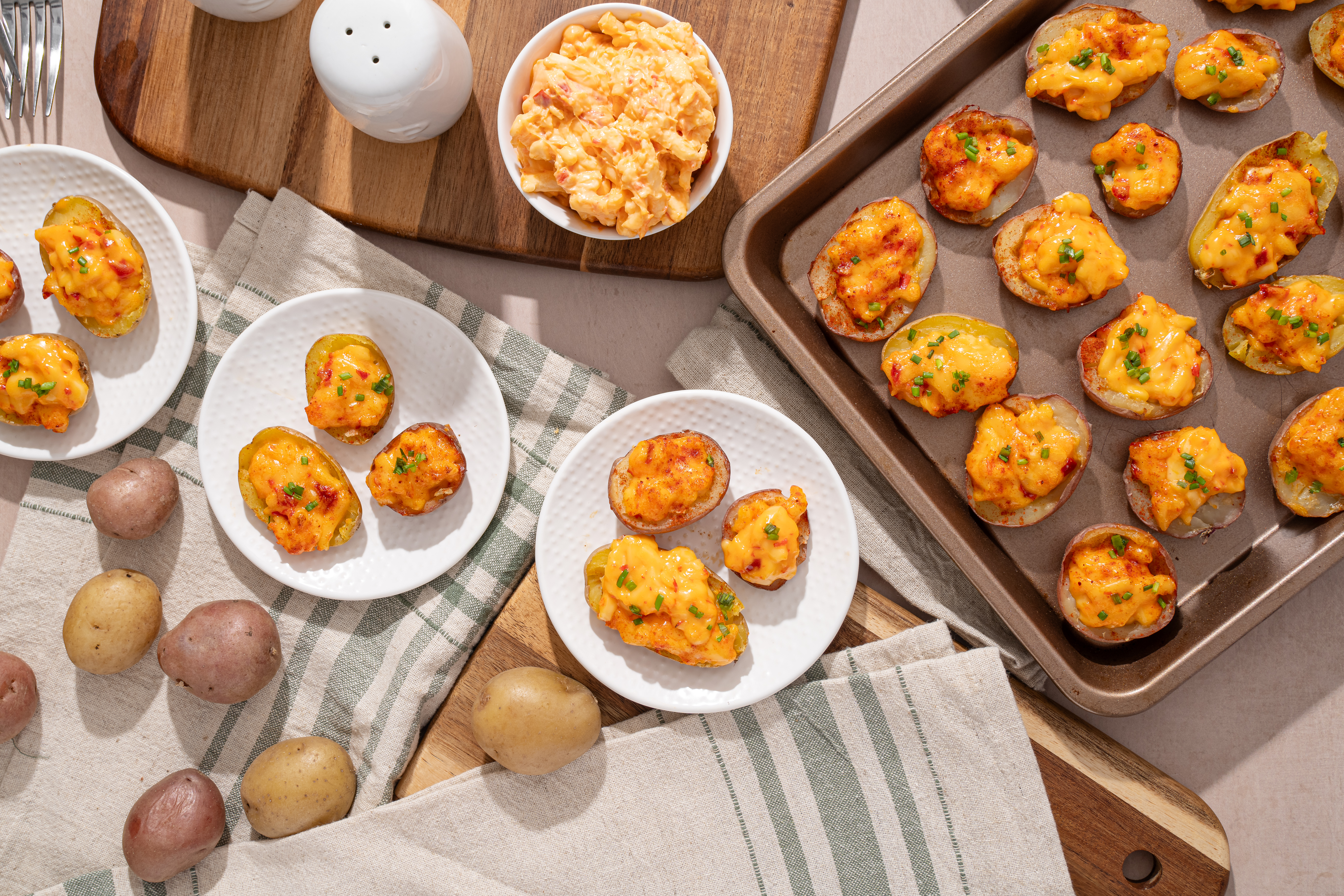 Tiny but mighty, these Halftime Show Bites run to the "I-need-a-good-snack" goal line like no other! Baby potatoes tackle your hunger when sacked full of a creamy pimiento cheese and almost-twice-baked potato-like filling when broiled to golden delight. Halftime Show Bites may become the full-time snack request at all your extra-curricular events. They're definitely a winner!