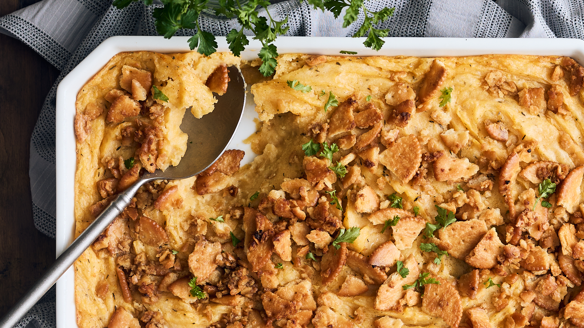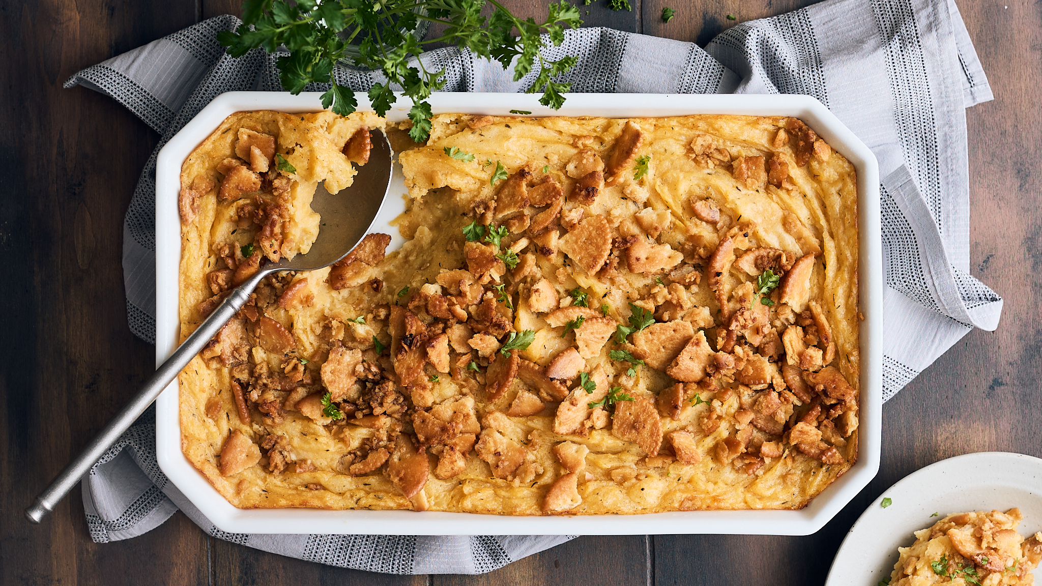Step 12 -Serve the potato casserole garnished with the parsley.