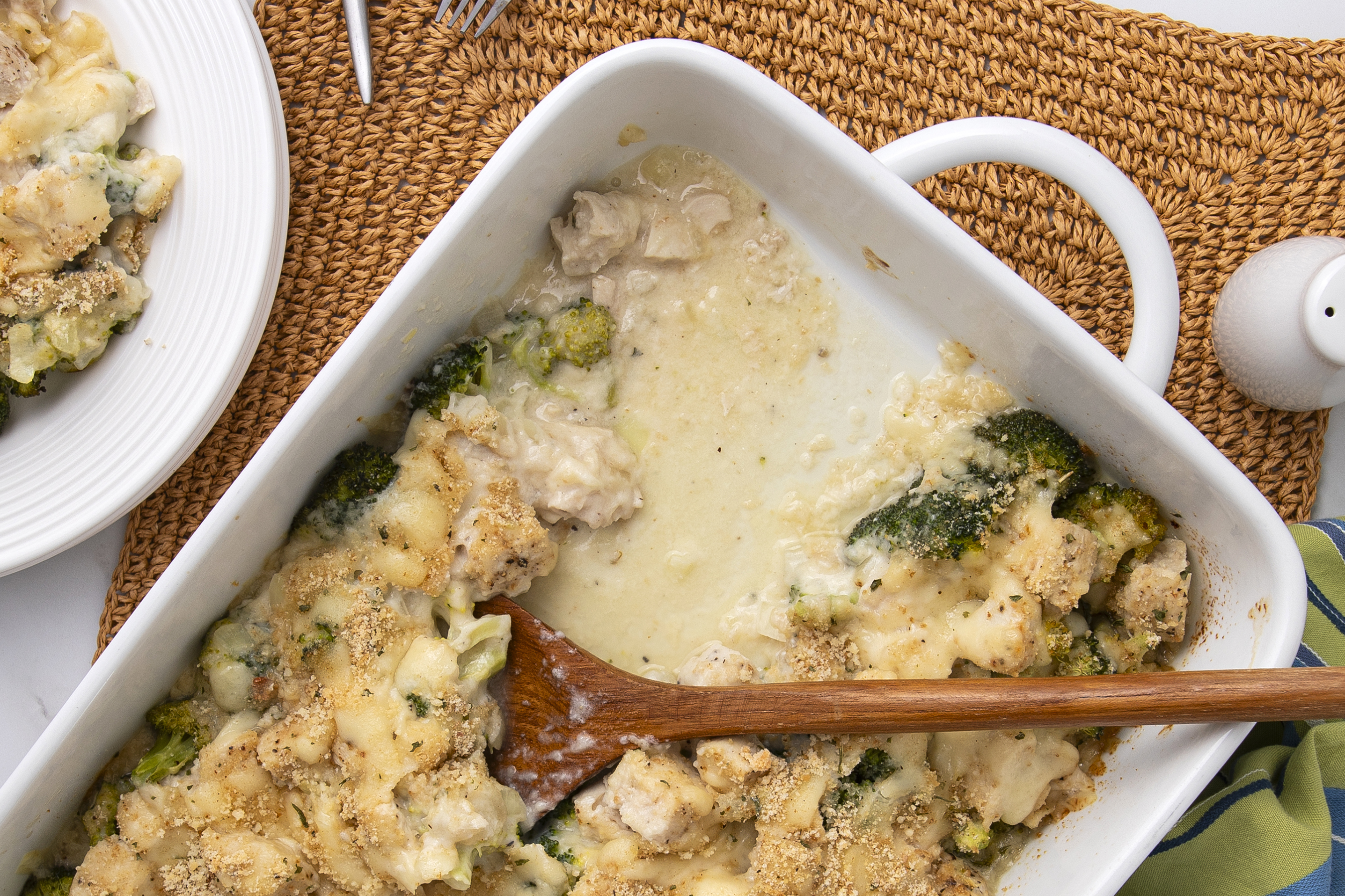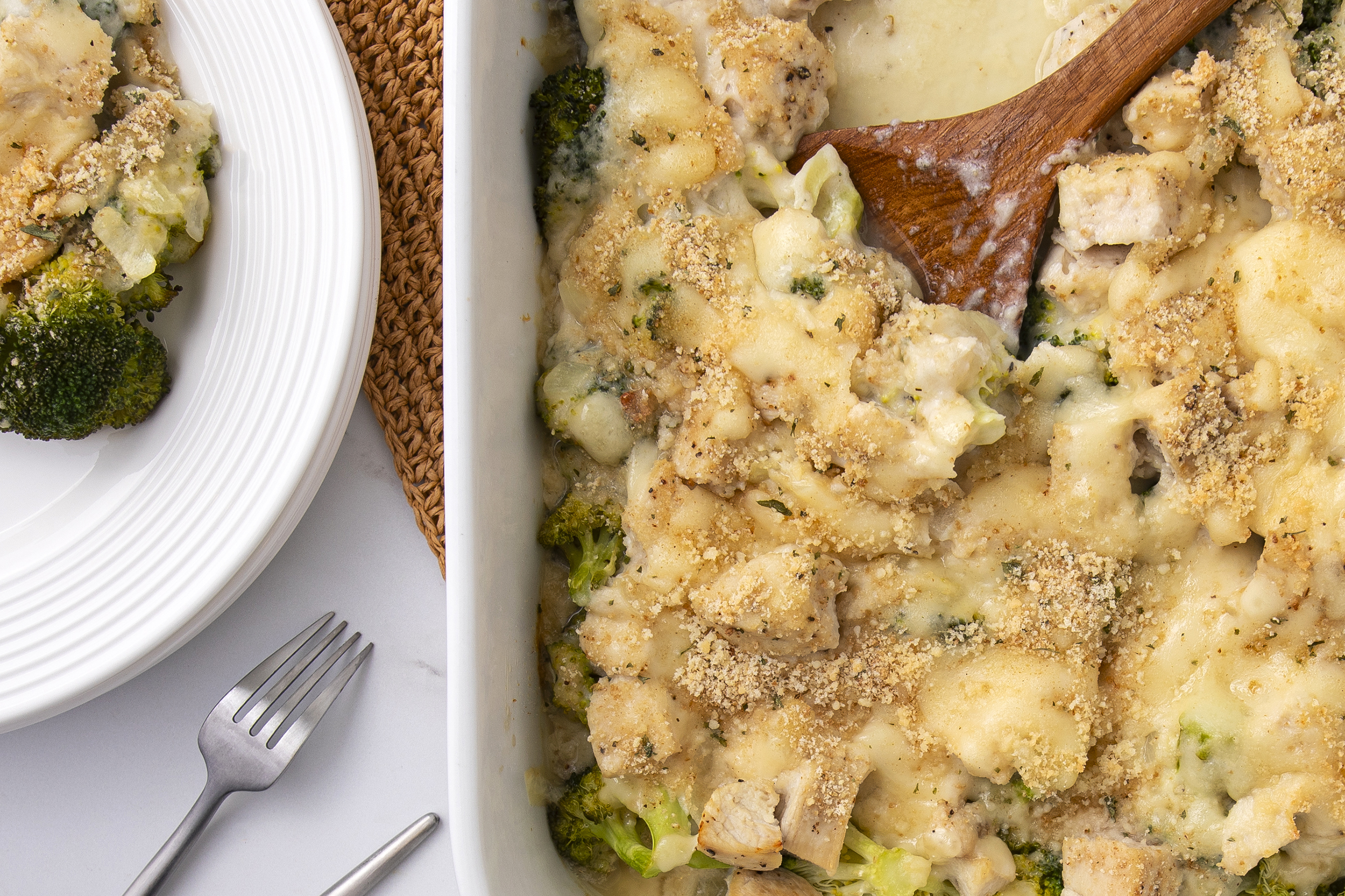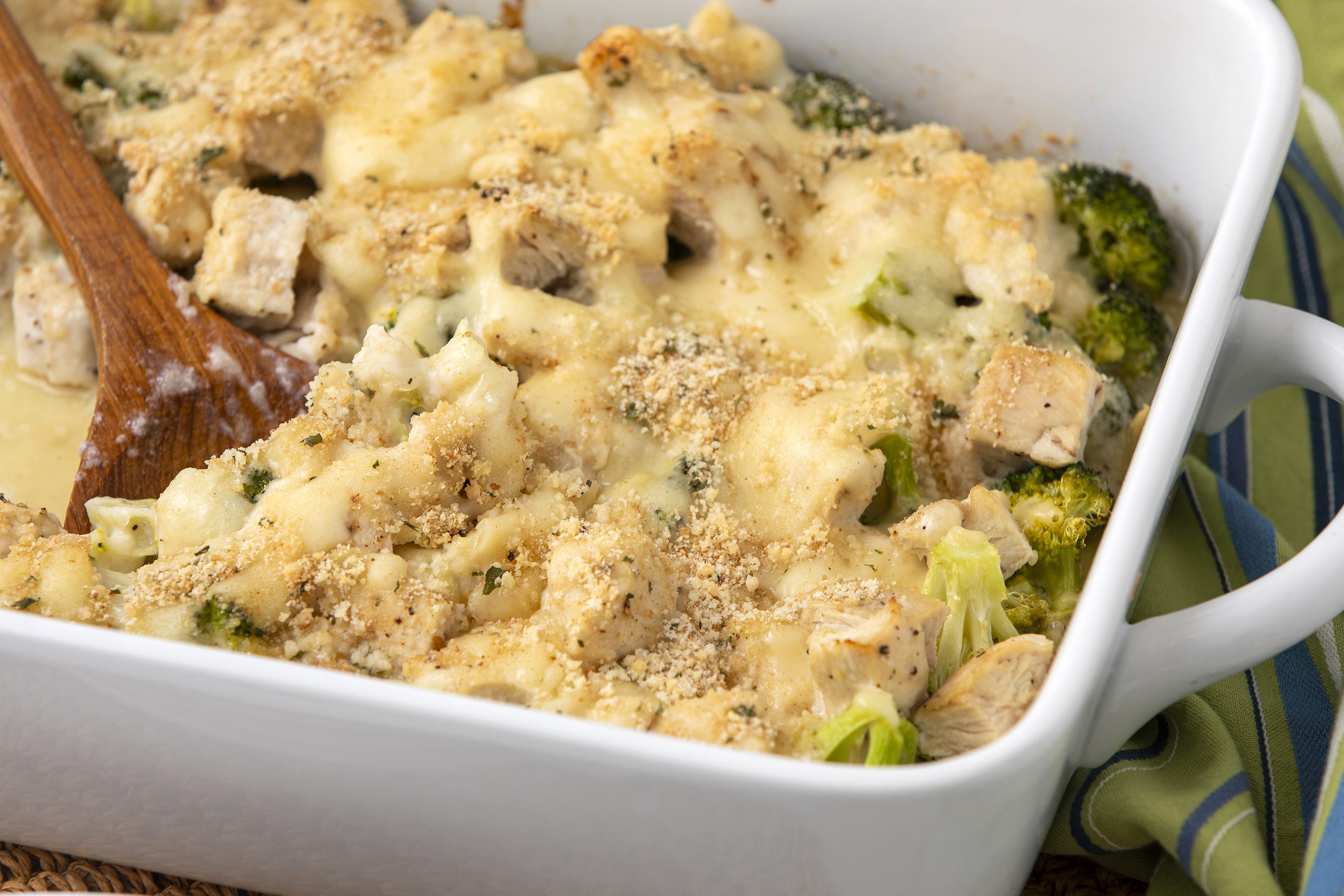 It's a luxury dish that can actually help you shed a few pounds! Fancy that! Skinnier Chicken Divan Casserole makes a few simple substitutions, like low-fat cheese and fat-free milk so you can still get that crunchy, cheesy, savory chicken and broccoli experience, but without the guilt! Don't let your diet's plans stand in the way of what your taste buds want with Skinnier Chicken Divan Casserole!